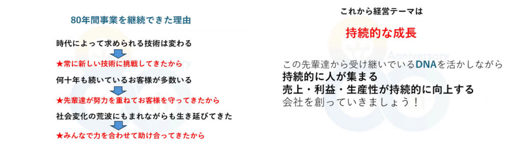勉強会では、80年間事業を継続できた理由についても共有されました。