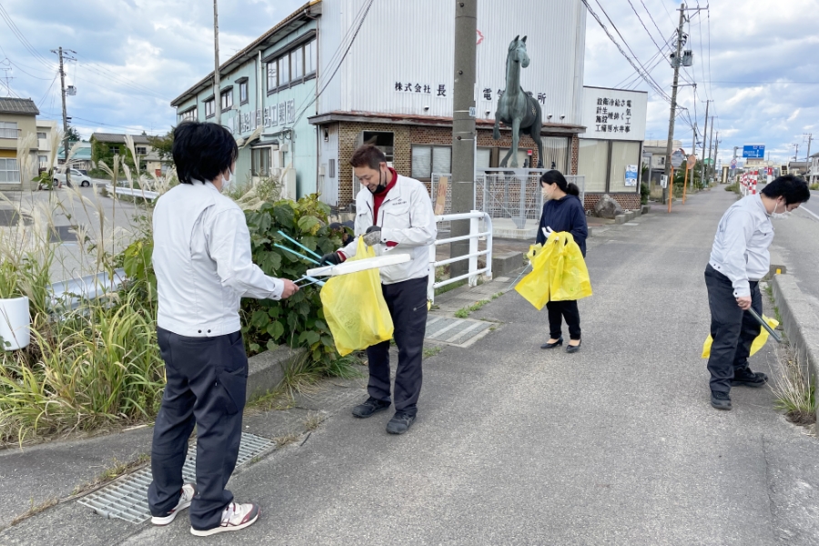 「長きにわたり当社を育んでくれた地域への恩返し」をテーマに、年3回の清掃をはじめとする地域貢献活動にも力を入れています。毎回多くの社員が参加し、部署を超えたコミュニケーションを楽しんでいます。