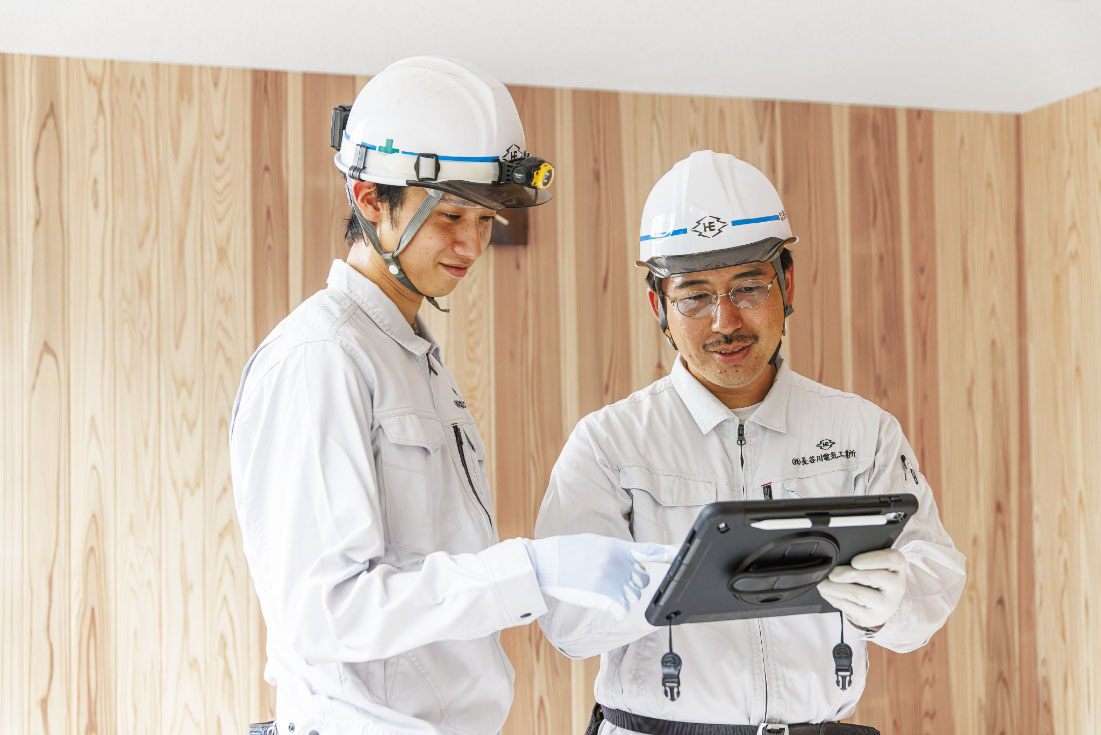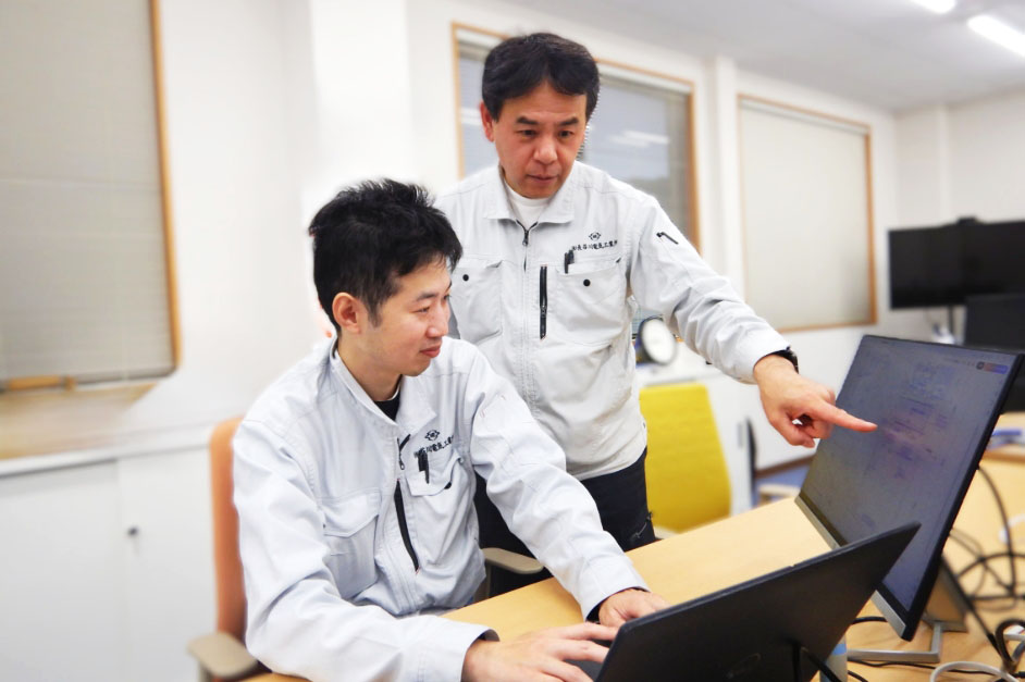 人間関係が良好でストレスフリー。優しく思いやりのある社員が多いうえに、勉強会や委員会活動といった部署横断的な活動を通じて和やかな雰囲気が保たれているように思います。風通しの良さも当社の長所。二人一組のチームで複数の現場を担当し、細かな情報に至るまでしっかりと共有しながらスムーズに業務を進めています。
