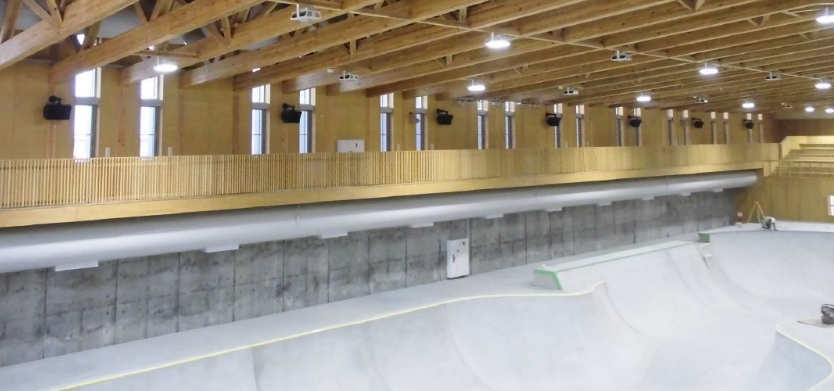 村上市スケートパークで電気・防災・通信など多様な設備を新設。耐候性や安全性に配慮し、安定した電力供給と安心して使える環境を整備。